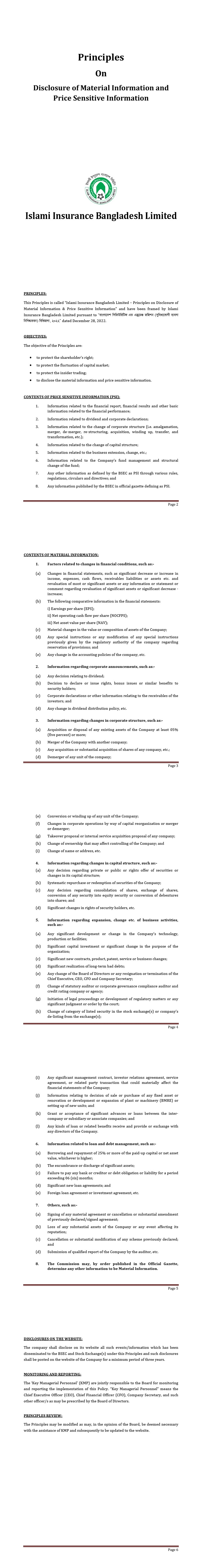 Principles On Disclosure of Material Information and Price Sensitive Information || 22 January 2024